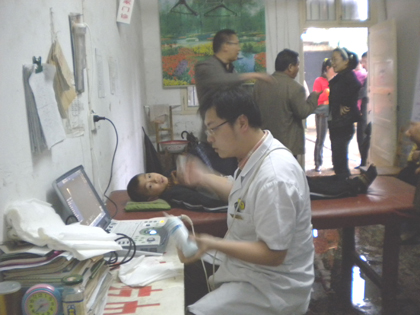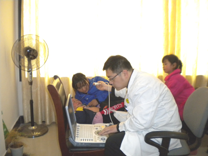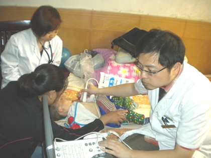 超声科于玺医生正给鄱阳的儿童进行心脏检查