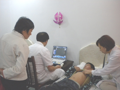虽然条件艰苦,但是儿童病区周红梅主任、超声科于玺医生仍然认真细致