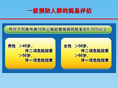 “养成健康的生活方式,是预防心血管疾病极经济有效的方法。”朱教授表示,目前,心脑血管领域专家提出“一级预防”概念,即对没有心脑血管疾病的人群进行预防,目的是防止动脉粥样硬化的发生与发展。那么,哪些人属于一级预防的范畴?请看下图:(2张图)