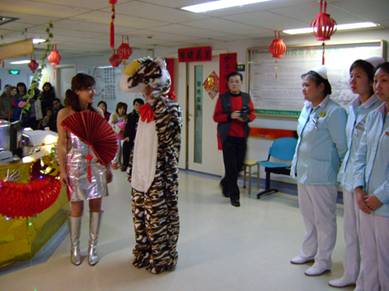 新春装扮是亚心医院的优良传统之一,到2010年,已经是第五届了。该活动自开创以来,便得到广大患者朋友的好评,尤其是住院患者及其家属,纷纷表示在亚心住院能收获很多温馨的感受,医生护士无微不至、亲人般的关怀,医院浓厚和谐的人文氛围,使得他们暂时忘却了病痛。