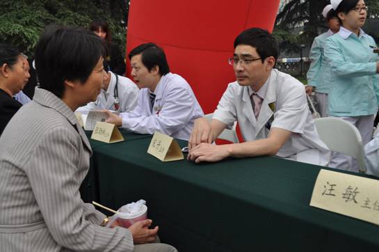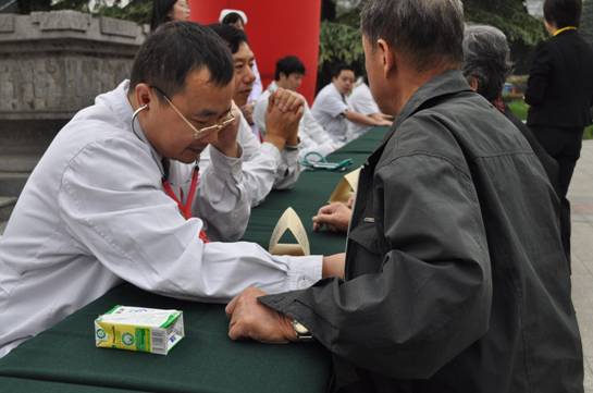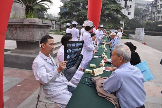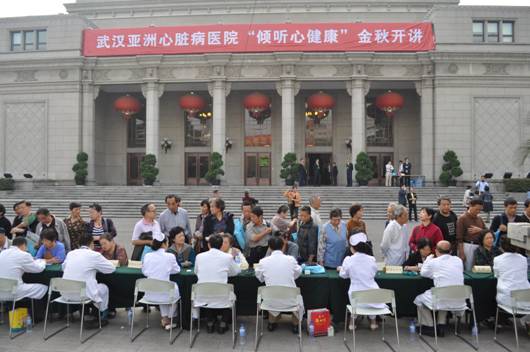 讲座开始前,亚心医院10余位专家组团为老百姓免费义诊