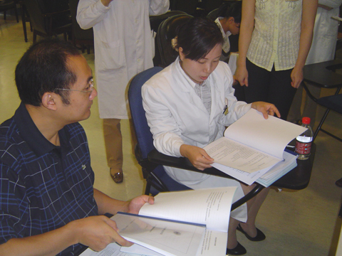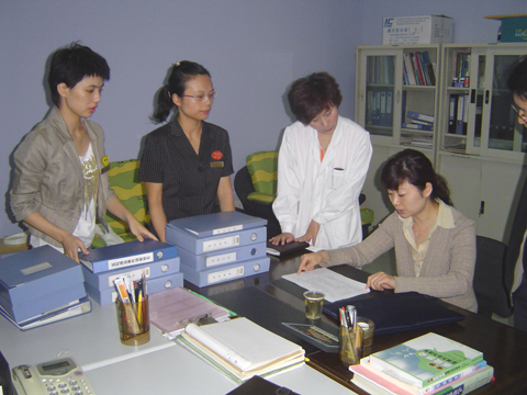专家正在检查我院的各种文件资料