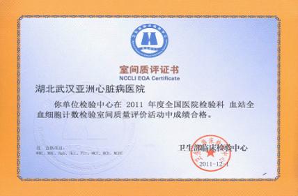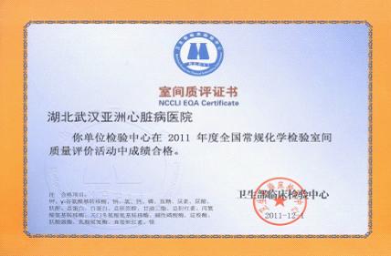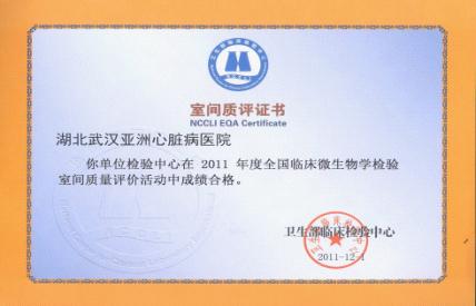 2011年度检验项目室间质量评价中,参加全国卫生部室间质评的项目成绩全部以优异成绩达标,这已是检验科连续8年已全优成绩达标。另外参加国际(EQAS)的糖化血红蛋白项目质评成绩湖北省第一名,全国194家实验室中第15名,全球878家实验室中第43名。来年力争更进一步,为患者提供全球优秀的糖化检测服务。