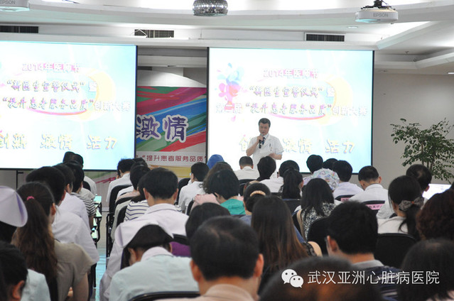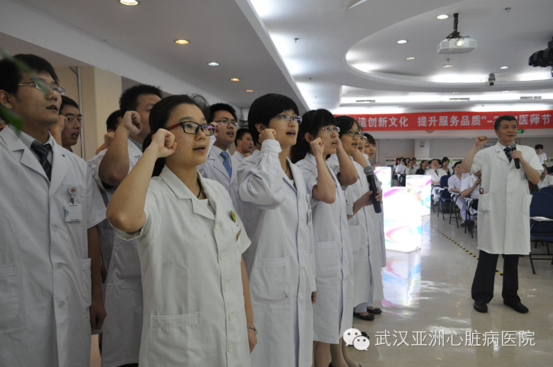 6月28日,武汉亚洲心脏病医院举办了一场别开生面的“ 2014医师节暨第二届“提升患者服务品质”创新大赛”。此次活动不仅进行新医生入职宣誓,授听诊器外, 全院1000多名医务人员还共同分享了来自于临床各科室的77项革新之举,从细节入手,充满人文关怀,此次大赛充分体现每一位临床医务工作人员对医疗服务品质精益求精的追求。
