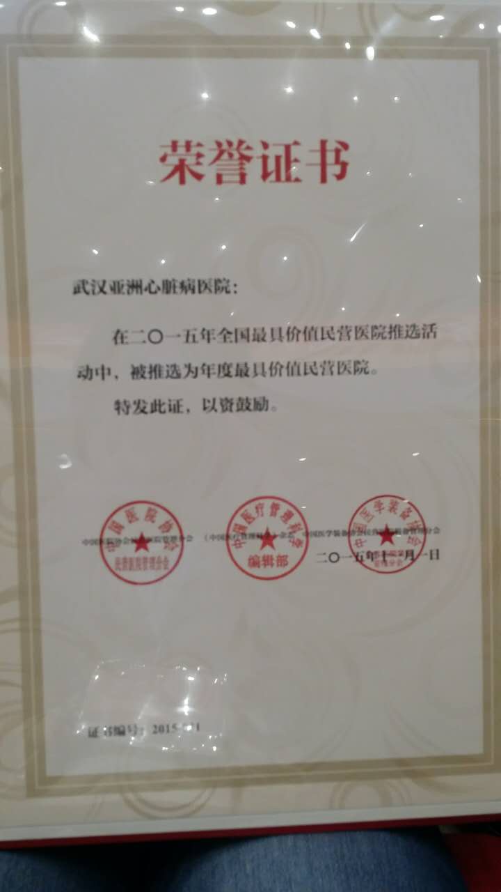 11月1日,“2015中国民营医院发展年会”在西安开幕,会议公布了包括武汉亚洲心脏病医院在内的中国38家极具价值民营医院名单。
