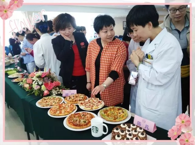 比赛中,奋战在临床一线的白衣天使们,纷纷化身为一个个巧手厨娘(还有二名厨爸哦),一盘盘色香味俱全的各种蛋糕和点心,展示着她/他们“出得厅堂、入得厨房”的迷人风采。