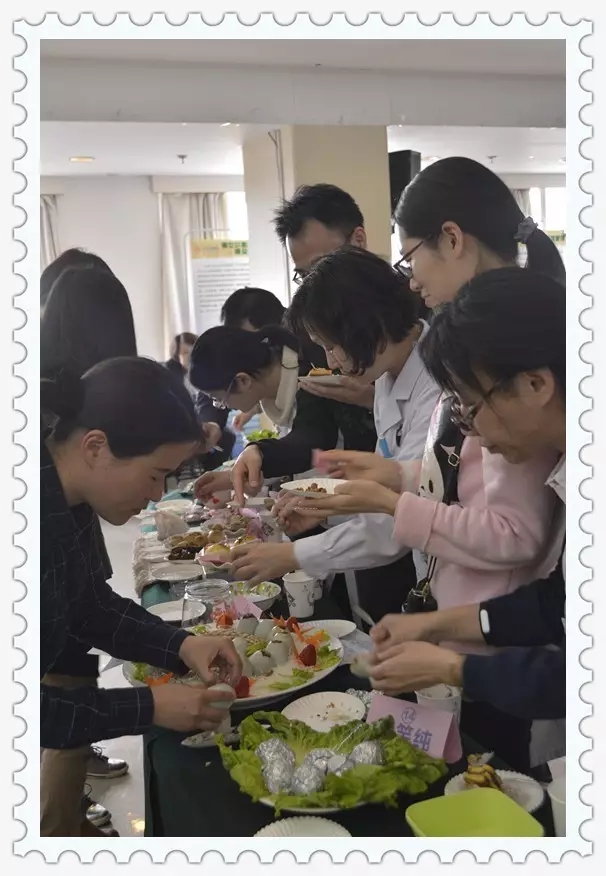 “我喜欢提拉米苏,因为它代表着热情和甜蜜。”来自医务办的张卉首先向大家介绍自己的作品。“想吃粽子不会包,喜欢吃咸蛋又觉得腻,怎么办呢?那你一定要尝尝我这个土豪糯米蛋”,“因为是一个妈妈,所以会经常给宝宝做卡通饼干”,“我这款蔬果沙拉,是专门为医院的糖尿病患者设计的”……,一个个动听的名字,一份份美好的心愿和祝福引来阵阵掌声。