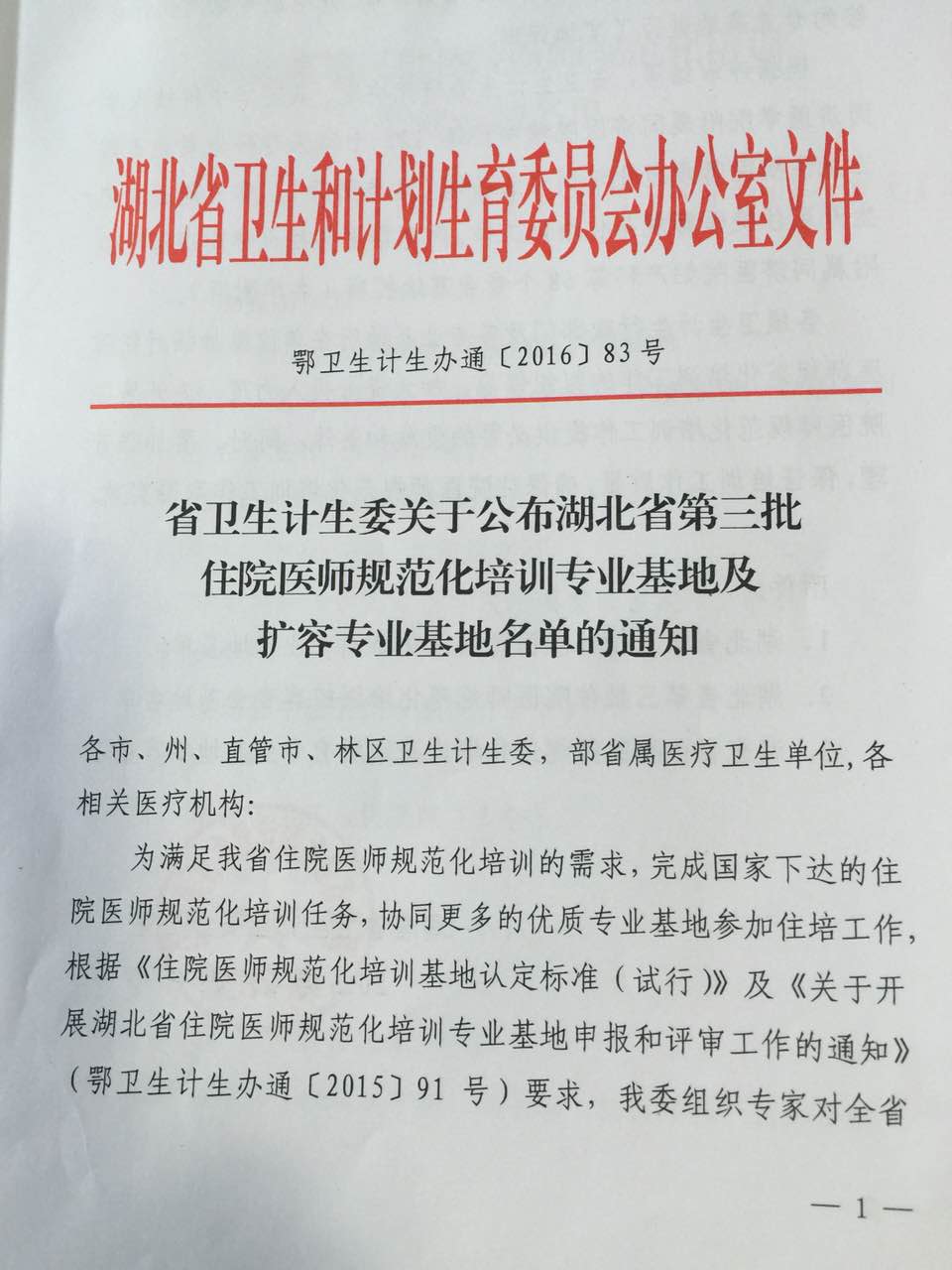 喜报——我院心外科入选湖北省住院医师规培基地!