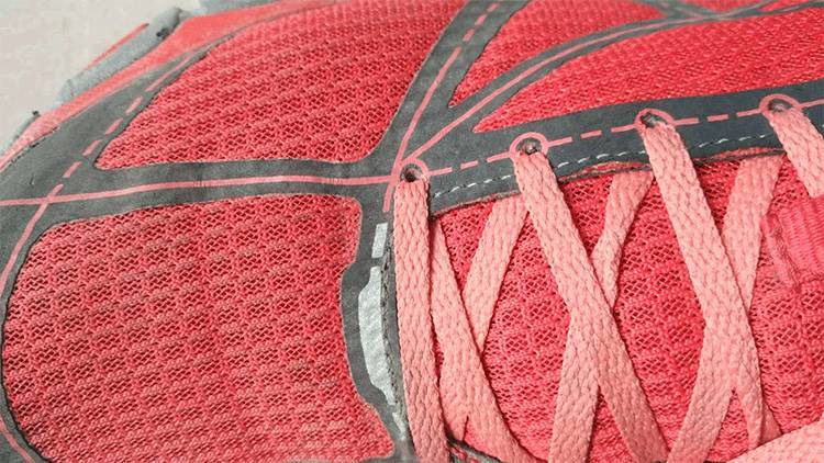 下面是一双徒步鞋,可以看出它的主体都是网纹料。有些跑鞋轻薄款甚至可以从外面看到袜子颜色。