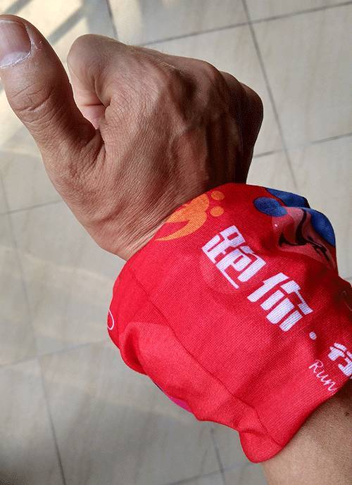 手腕上扎个魔术头巾,或者腕带,这个时候就很好使了。单手一抬一擦就行,绝对不影响跑步。