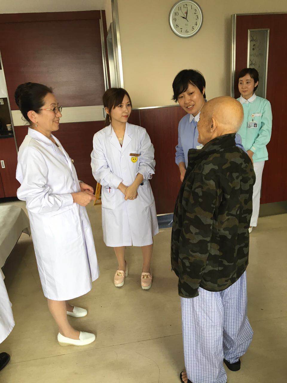 2016年6月7日上午,来自日本的护理专家——松沼瑠美子老师来到了26楼VIP病区,探望了入住在3号病室的游老爷爷。