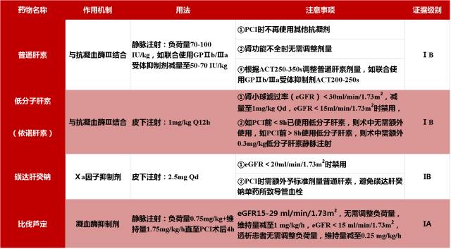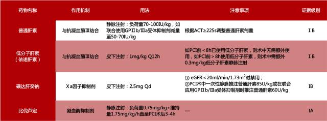 表1:NSTE-ACS患者PCI常用抗凝药物总结(2014AHA/ACC指南)