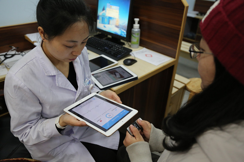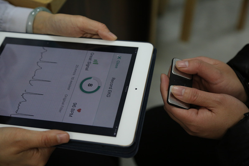 两手大拇指放在电极片上,在IPAD屏幕上就立即出现心电导联图,不到30秒就可捕捉到异常心电信息。昨日,在武汉亚洲心脏病医院门诊大厅,67岁的彭先生免费体验现代房颤筛查新技术后,既惊奇又佩服:“这个仪器真是牛!平时没什么感觉,没想到一查自己居然有房颤。”