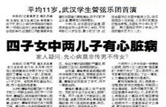 楚天都市报讯 (记者严珑 通讯员吕惠 实习生张栋 武汉珍 王丹桦)先天性心脏病莫非只传男不传女?这是困扰了谭峰(化名)一家人的疑惑,因为他母亲患有风湿性心脏病,在4个子女中,他和弟弟均查出先心病,两个姐姐则很健康。