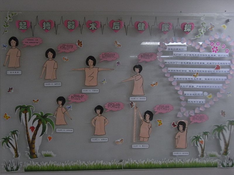 此康复操主要是锻炼左上肢功能运动,训练中应避免过度疲劳,循序渐进、适可而止即可。我院心律失常科室采用多种形式开展康复操的活动,包括一对一指导,将起搏器康复操制成宣传图片挂于宣教墙上,责任护士每日指导患者练习;每周一与周四将科内安装永久起搏器患者集中在一起,伴随着音乐与节排进行康复训练。康复操避免了术后患者术侧肢体功能活动障碍(手抬不起来)的现象,对提高患者的生活质量具有非常重要的意义。此康复操已在我院大力推广,采取此种方式,大大的促进了护患关系,真正做到了以患者为中心的服务。