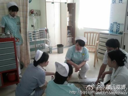 #病房随手拍# 清晨的病房里,大家怎么都蹲在地上?旁边还有急救车?是有患者在抢救吗?别紧张,14楼医护人员正在进行CPR实战演习。心脏病突发时,医护人员的应变能力可是非常关键的啊!